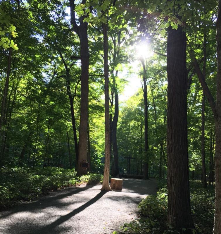 Across the road from the picnic shelter visitors will find a path leading to the Chapel of the Templed Trees, an outdoor sanctuary with American Red Elm logs as pews and tree stumps as pulpits—a beautiful setting for an outdoor wedding or peaceful reflection.